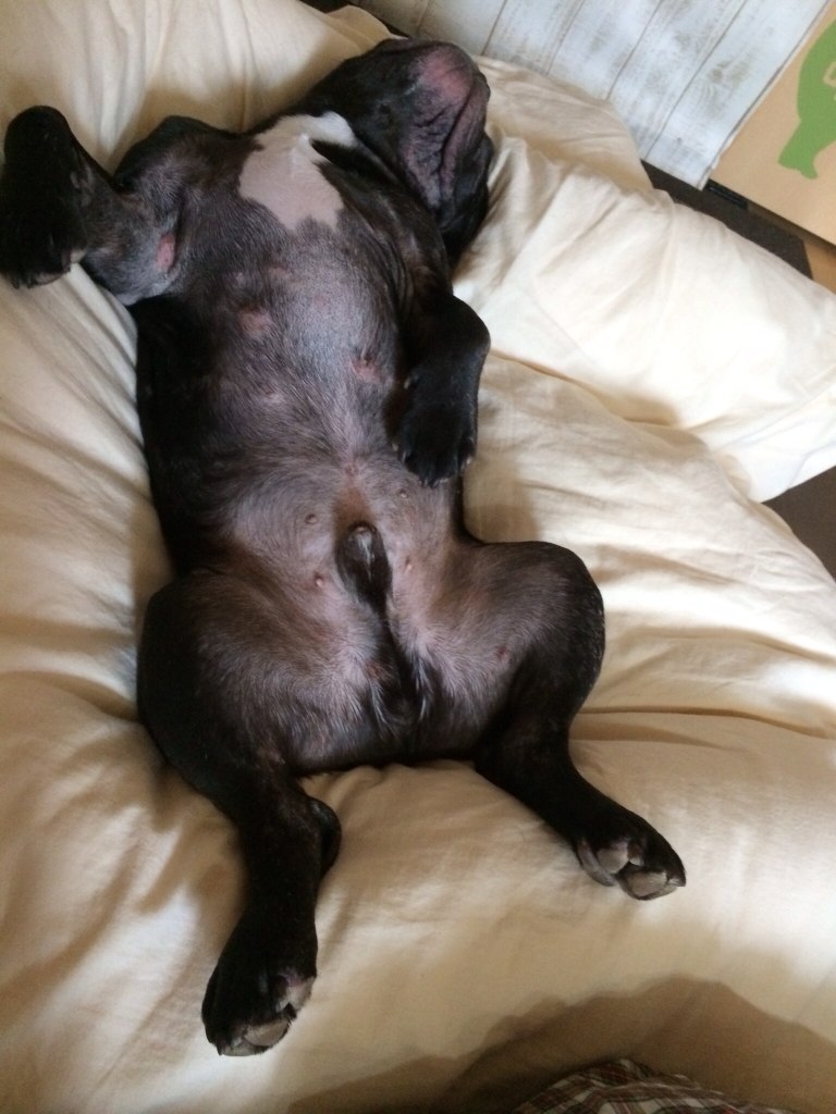 〈大好きな私の妹にナデナデされてヘソ天で昇天した豆さん〉