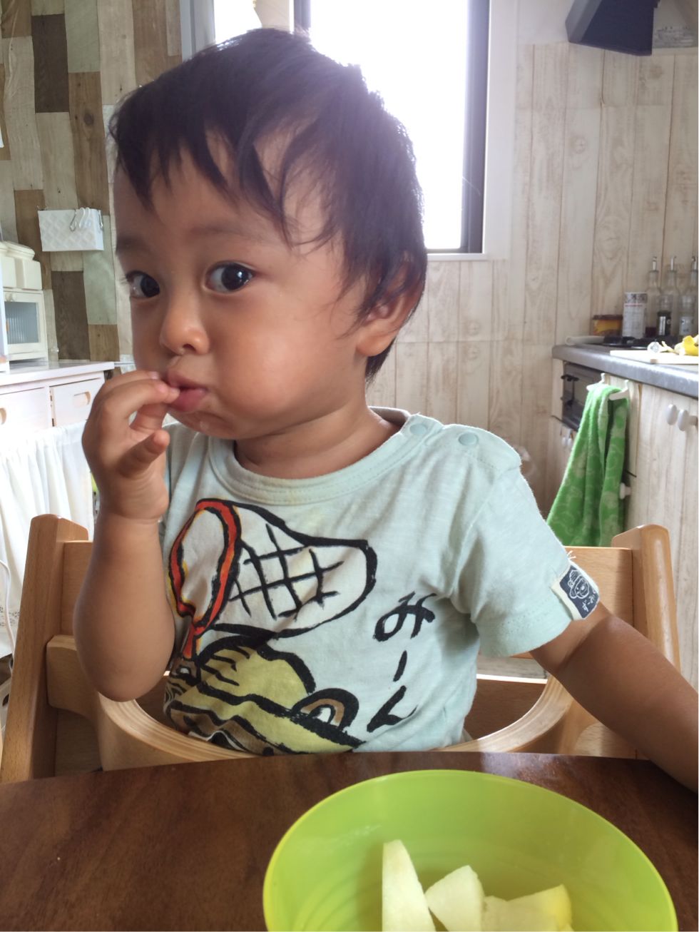 チビは初めての梨にお口パンパン!