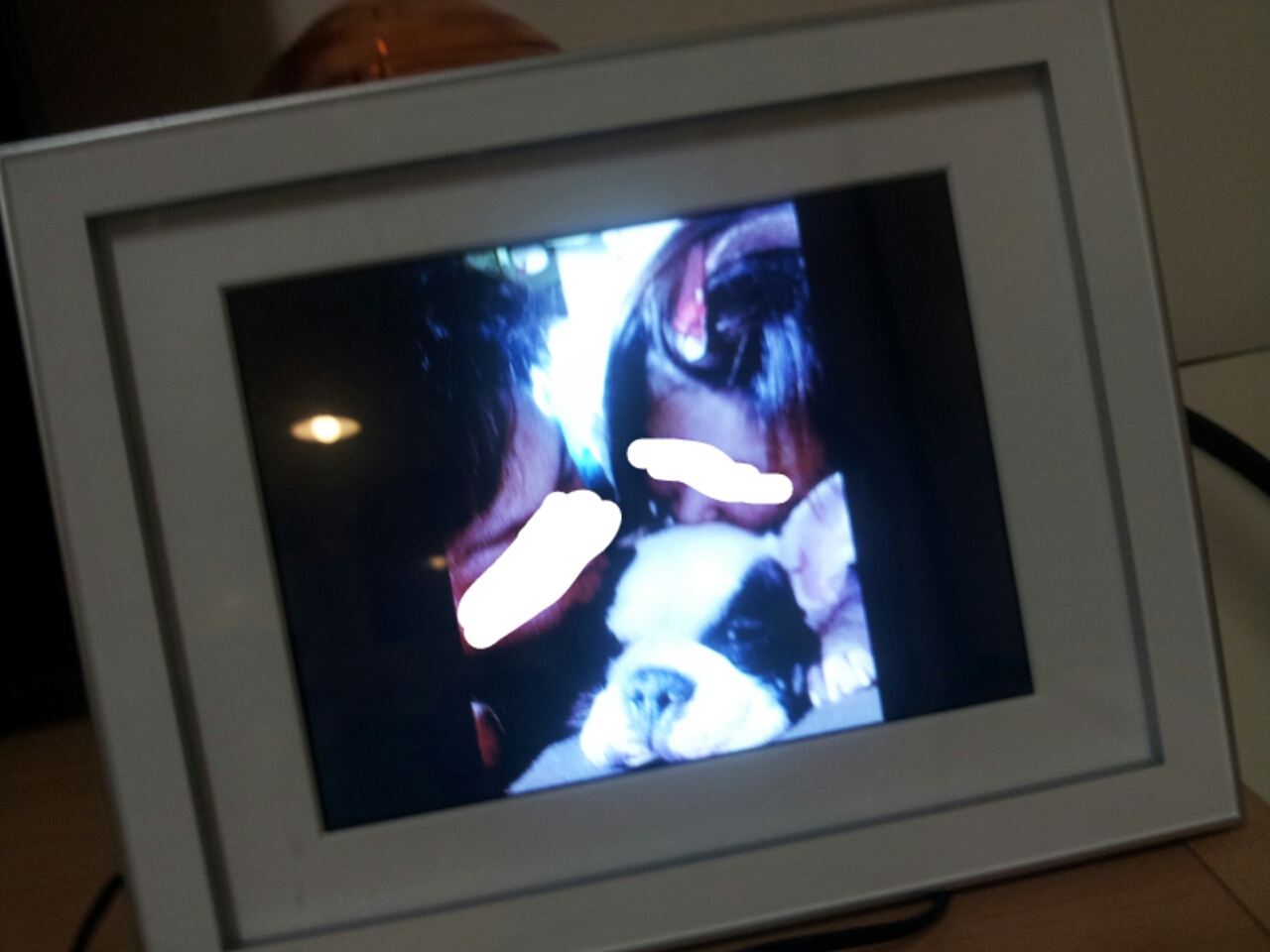 真剣に考えるこの日はどうしても涙がでてしまうんだけど、そんな時にぶーりんの写真をみてチビが「わんわ!」って。