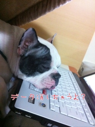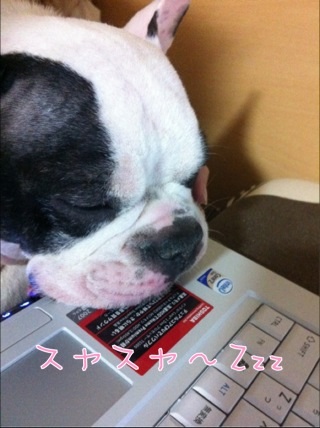 ぶーりんがPCを枕にしてしまった(/ _ ; )
