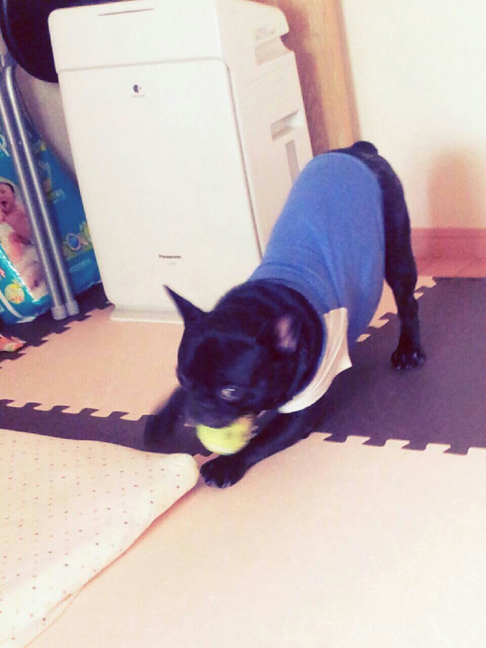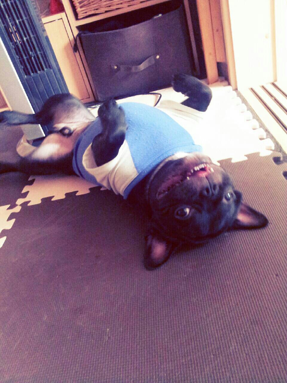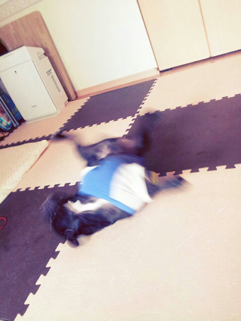 豆チャンがひっくり返って1人遊びを満喫してたので