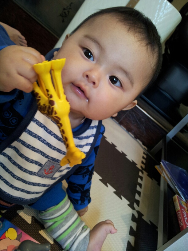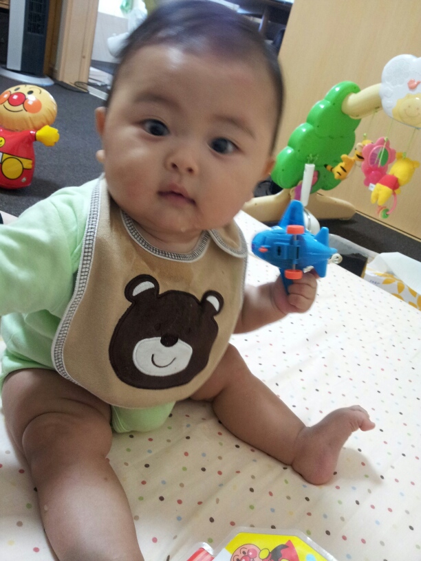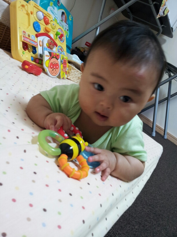 ほっとくとギャン泣きでこんなぐしゃぐしゃ顔に(笑)