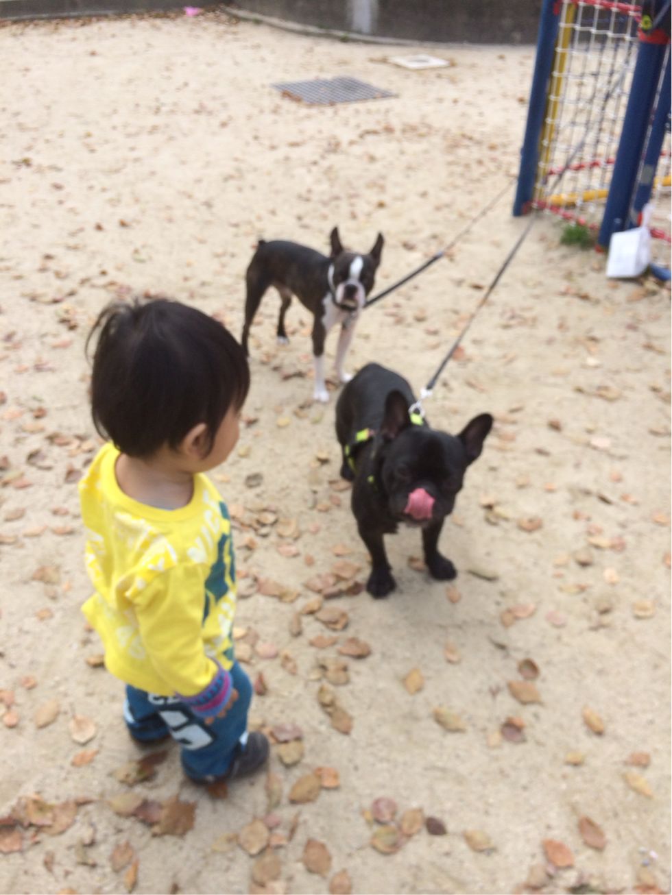 最近はさんぽだけじゃなくて公園遊びも一緒に。今の季節しか出れないもんね。