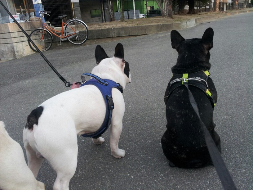 夕方の散歩はえっくんとへんぞーも一緒に♪