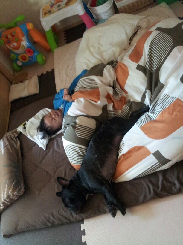 もう眠いから先に寝るねとチビの布団で寝だす‥。((+_+))