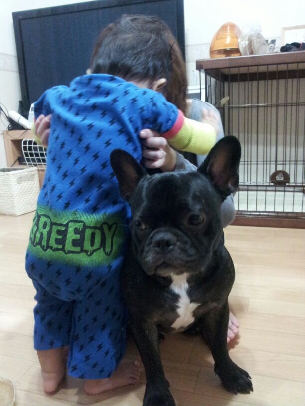 今日はまめの顔に自分の顔近づけて寄り添ってました。まめの上に乗ったり触りに行ったり