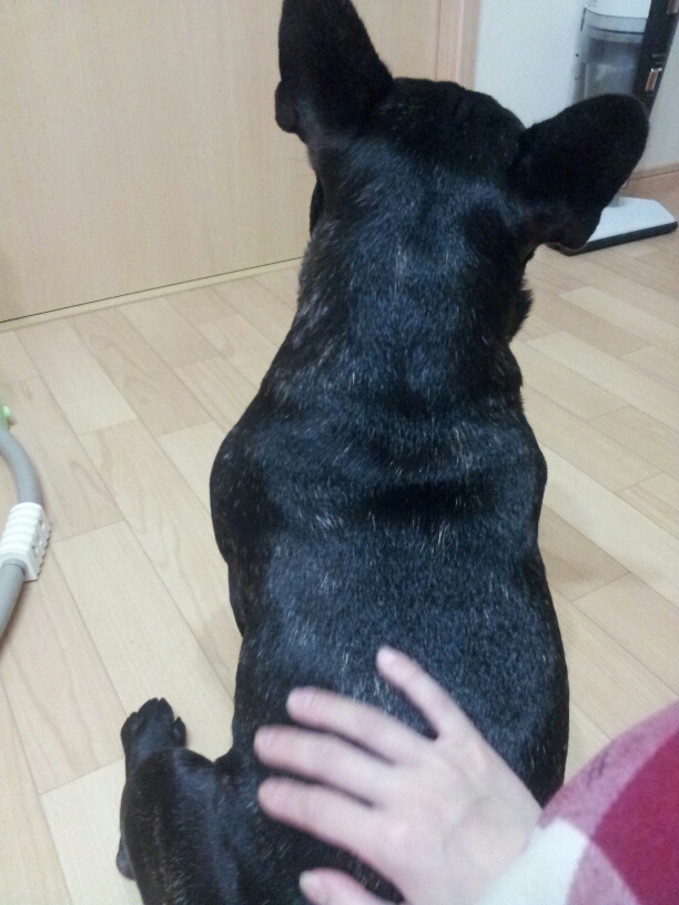 横着にもなでなでさせながらパパの方向を見てる(笑)