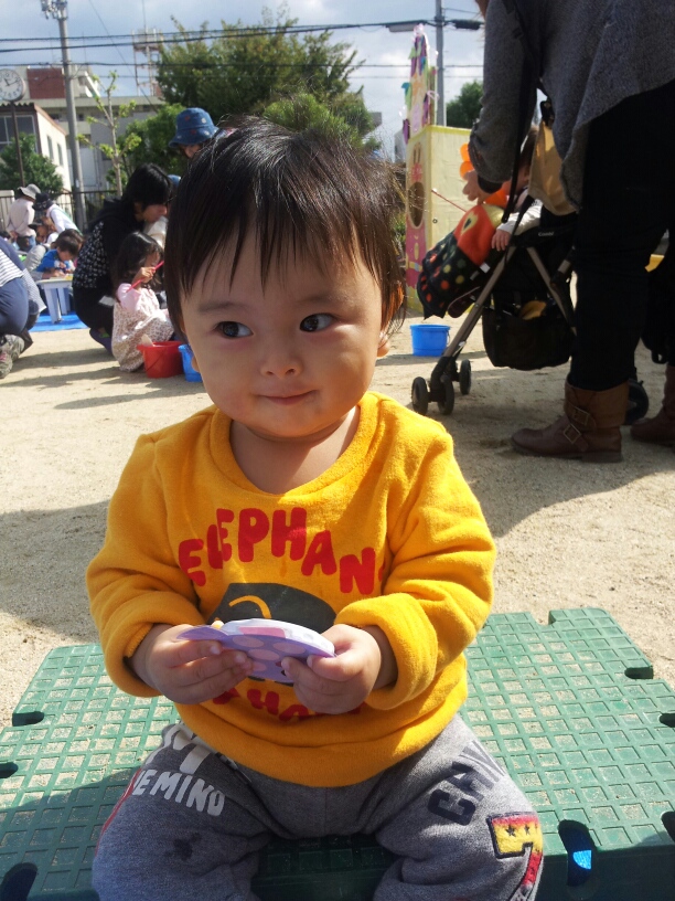 チビは体が小さいほうなので去年着ていた服がまだ入りました♪久々のロンパース姿にニヤニヤな母です(笑)