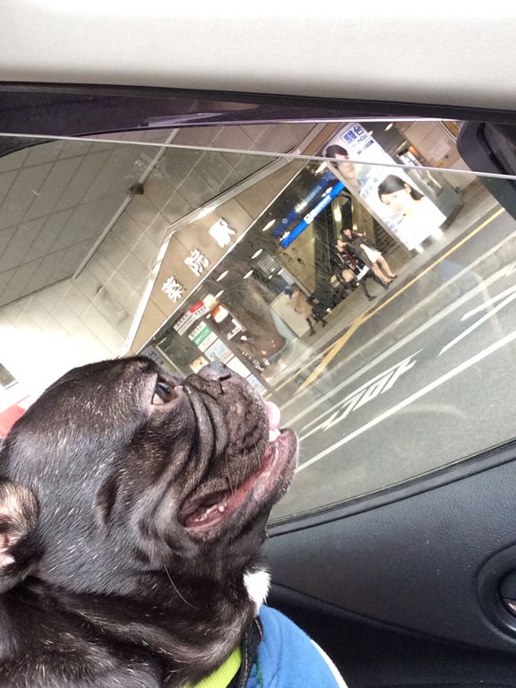 こちらはテラス席もペット不可なので初めて車で少しお留守番してもらいました。