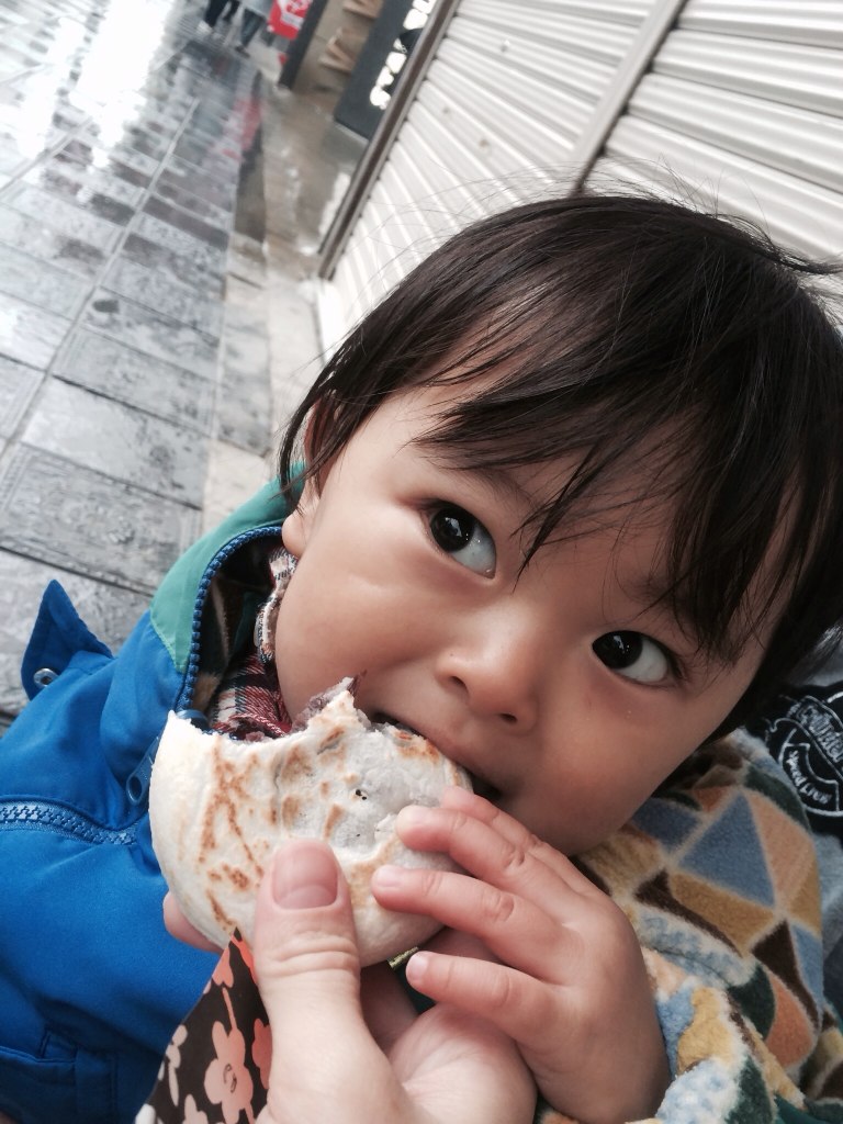 路上で適当なお店で買った梅が枝餅は