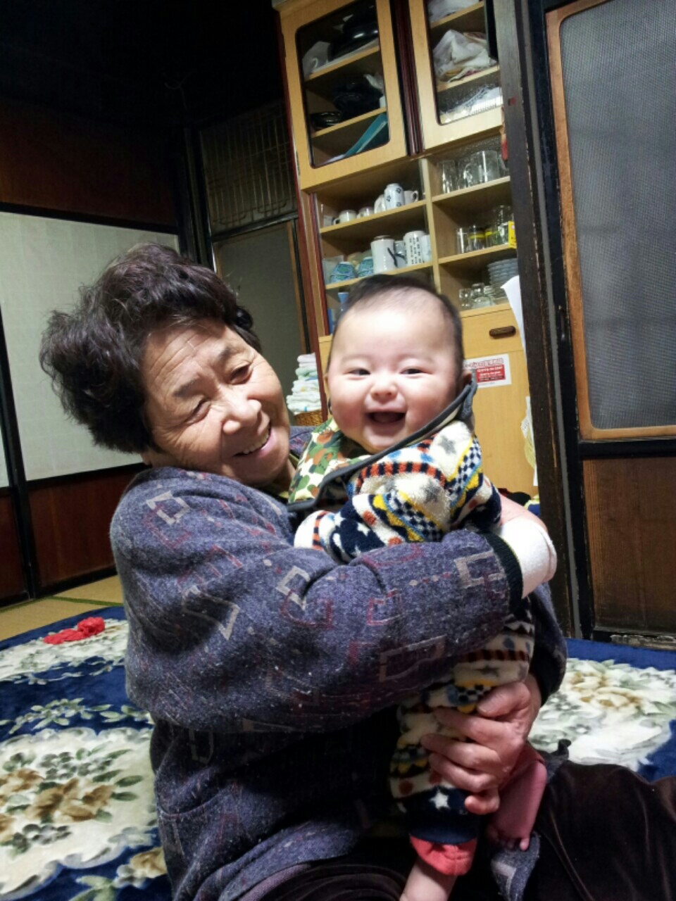 おばあちゃん、とってもうれしそう。♪やっぱひ孫はかわいいですよね~。