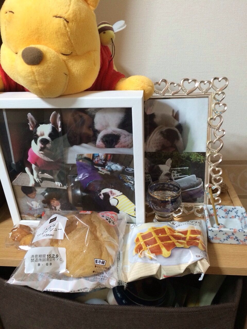 食欲が無かったぶーが最後にひとかけらだけ口にしたワッフルと甘いクリーム好きだったからとシュークリーム^ - ^