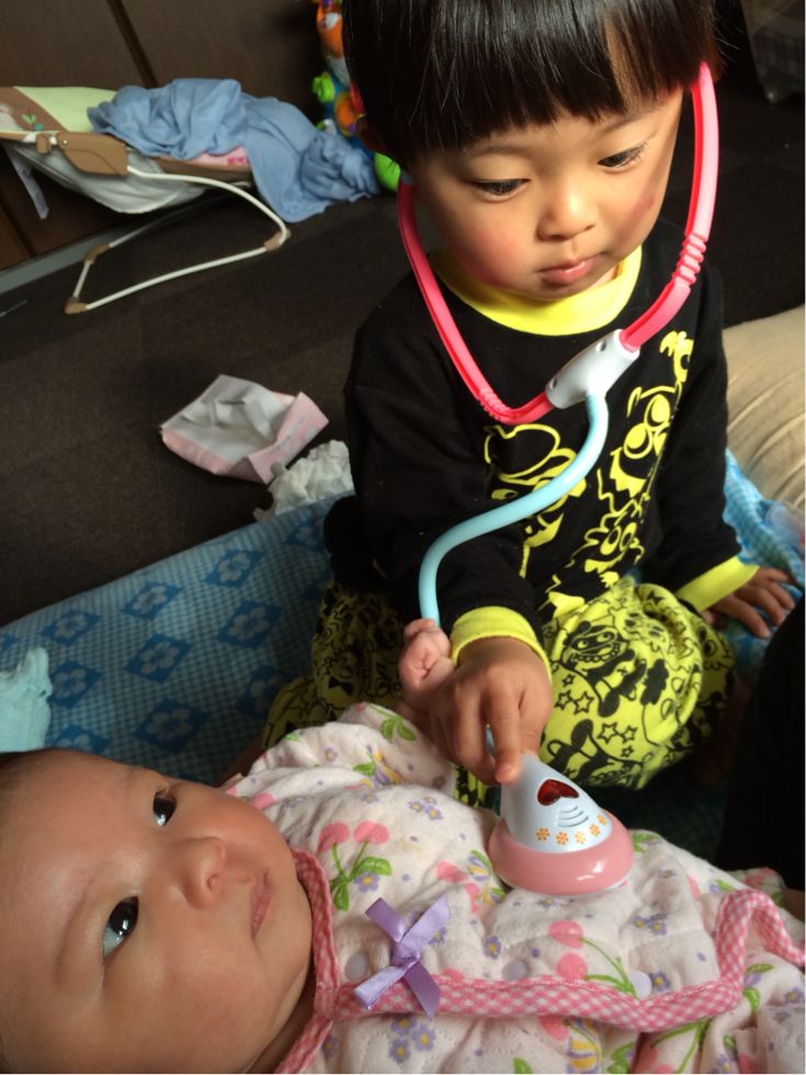 「はい、げんきでーちゅ」「注射しまちょうねー」とかいいながらお医者さんごっこ笑